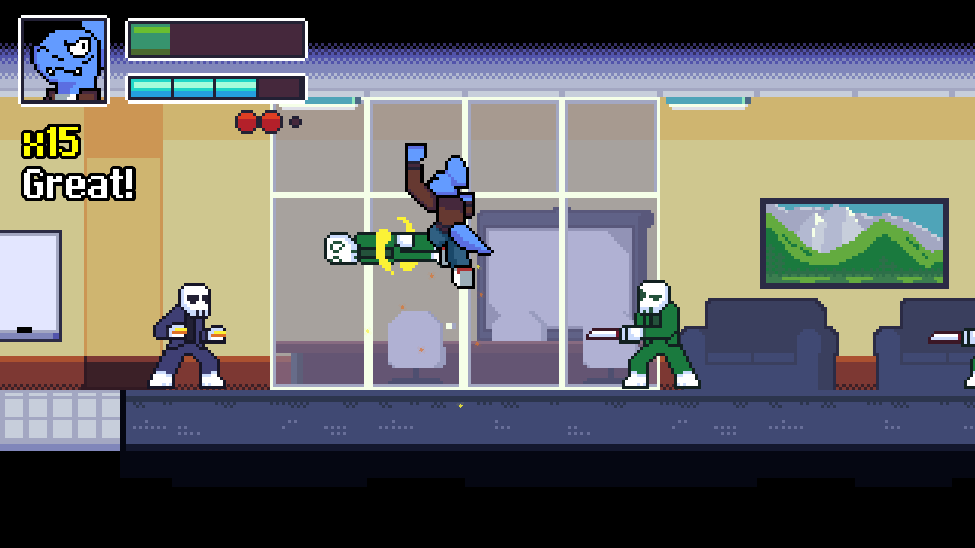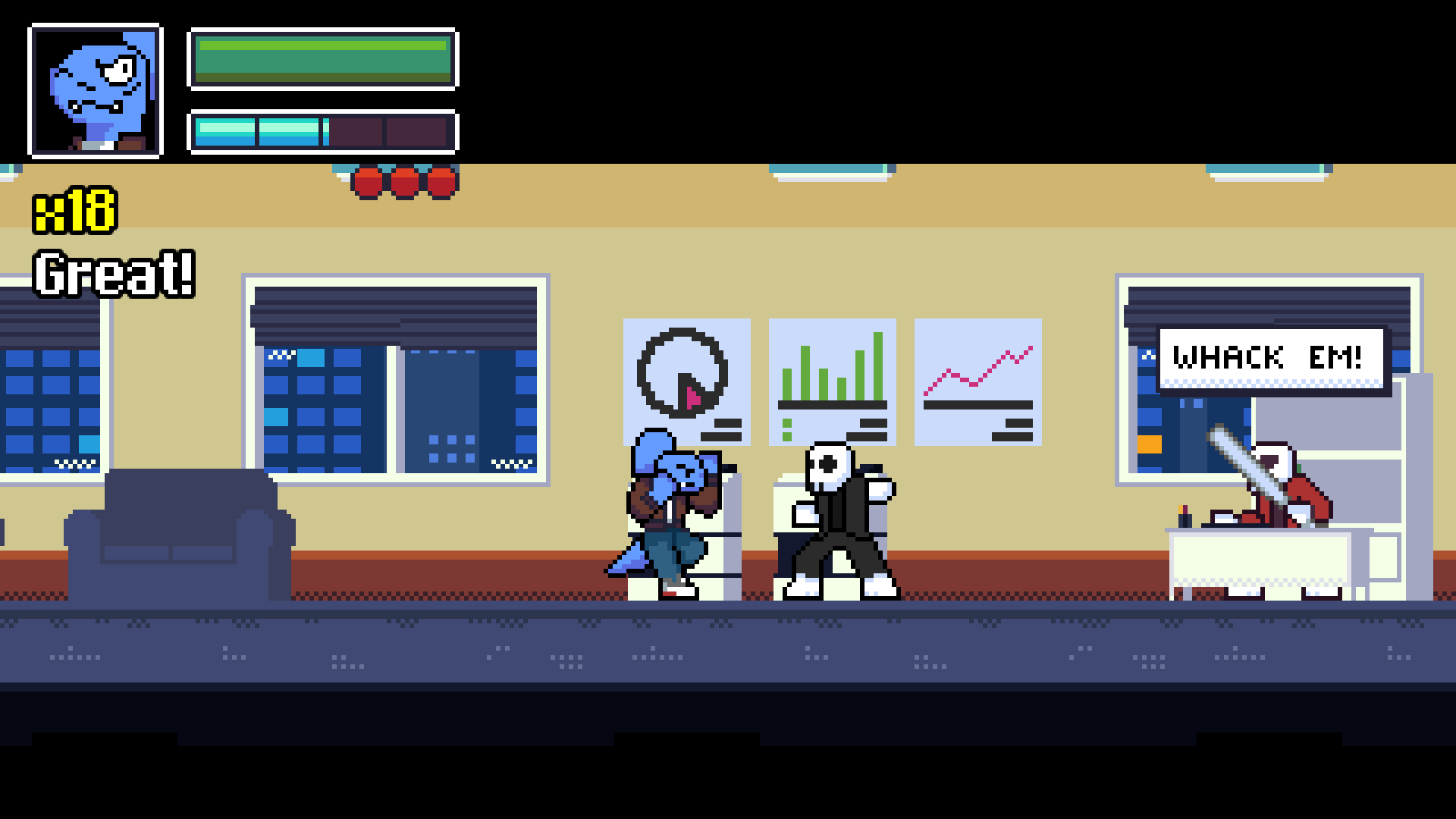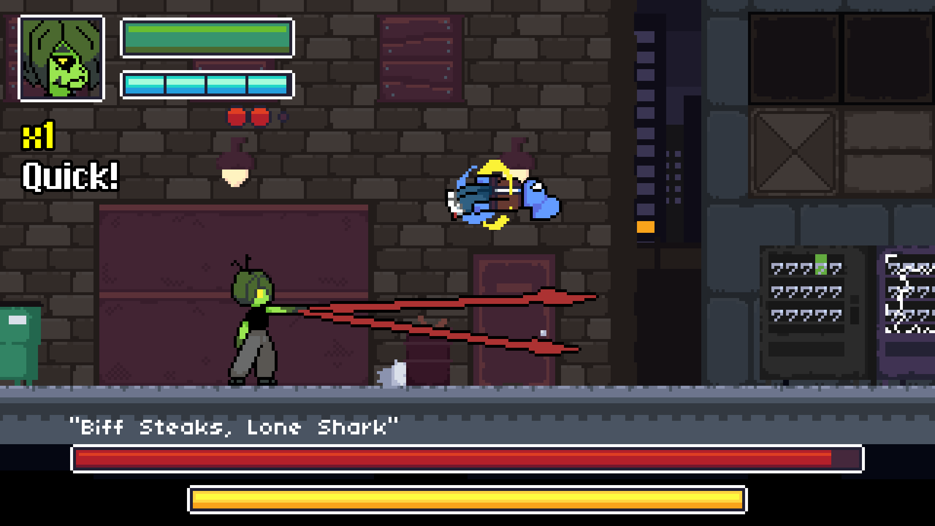 Fight your way through armies of goons and unique bosses in a variety of levels! Bottom-Up Beatdown: Hostile Takeover combines the chaos of classic 2D beat em' ups with the freeform combat systems of character action games. Juggle enemies, use your environment, and unleash your powers to clear waves of enemies! Battle through unique environments led by their distinct bosses!